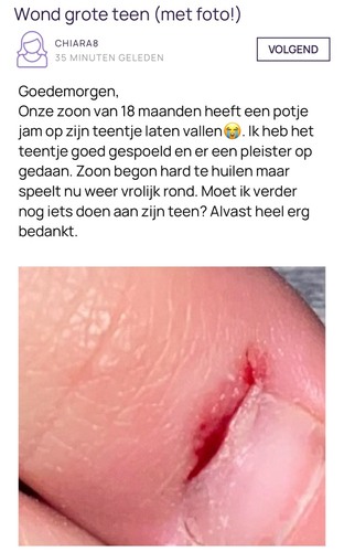 De jampot is niet stuk gegaan. Hij loopt verder wel goed maar kijkt af en toe naar zijn voetje en is iets voorzichtiger als normaal tijdens het lopen. Hij loopt, speelt, eet en is verder gelukkig wel vrolijk aanwezig. We mogen aan zijn teentje zitten. Het meest gênante is dat ik een ehbo diploma heb en waarschijnlijk meteen goed gehandeld heb (voetje onder de kraan gehouden en gecheckt of hij zijn teen kan bewegen en daarna pleister op geplakt) maar omdat het om mijn eigen kind gaat ben ik onzeker of ik alles gedaan heb wat gedaan moest worden.