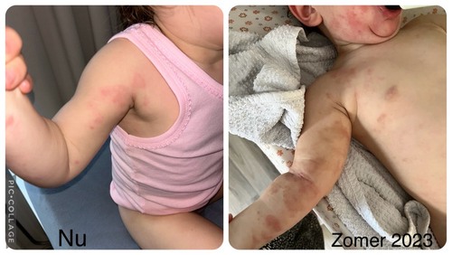 Ik weet niet of dit eczeem is.. ze heeft maanden geeen plekje op haar lichaam gehad en nu ineens sinds gister speelt dit weer op net als vorige jaar rond deze tijd.