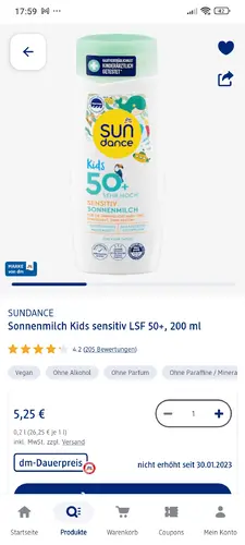 Wij gebruiken zonnebrand uit Duitsland, van DM huismerk. Die is heel betaal ...