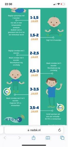 En als ze dat nog niet kunnen bij 2 helemaal geen nood, dan wachten we idd af tot 2,5 of die zinnetjes komen, mits het taalbegrip goed zit.
