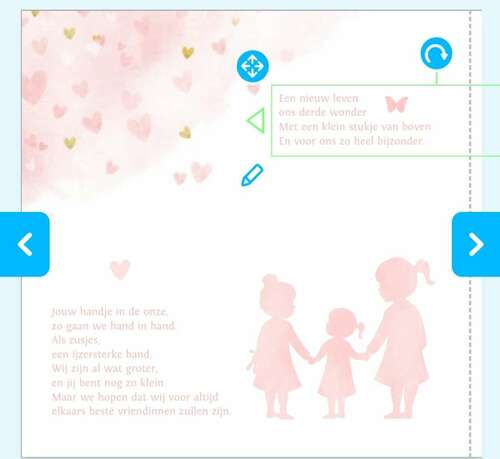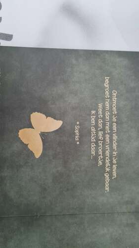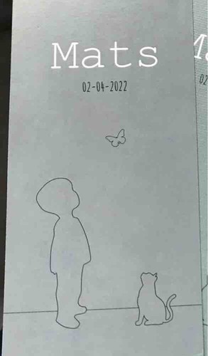 Wij hebben er een tekstje op helemaal onderaan 'Zij hoort er altijd bij' als verwijzing naar ons eerste dochtertje met een vlindertje bij.