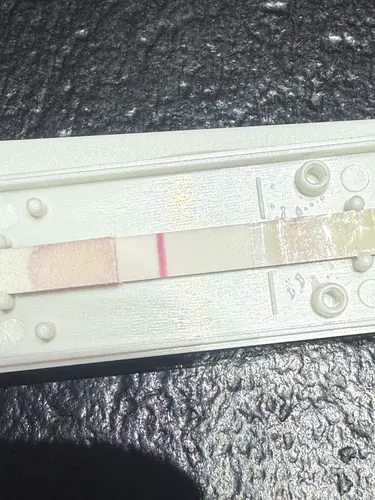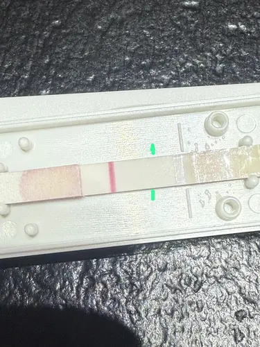 Ik zie echt helemaal niks. Ben je zeker van je eisprong? Als je echt 14 dagen na je eisprong zit zou je namelijk wel met het blote oog een streep moeten zien zonder de test te slopen als je zwanger zou zijn. Zolang je niet ongesteld bent kan de test uiteraard nog positief worden.