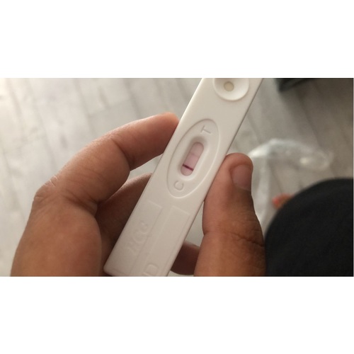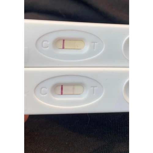 Hier zie je ook een lichte streep was ook van gisteren. Die andere test heb k niet kunnen vinden. Anders misschien moet ik de dokter morgen bellen.. sorry dit is mn eerste zwangerschap en vind het beetje spannend allemaal en dan ook nog dit :(