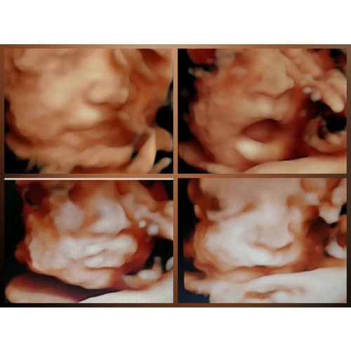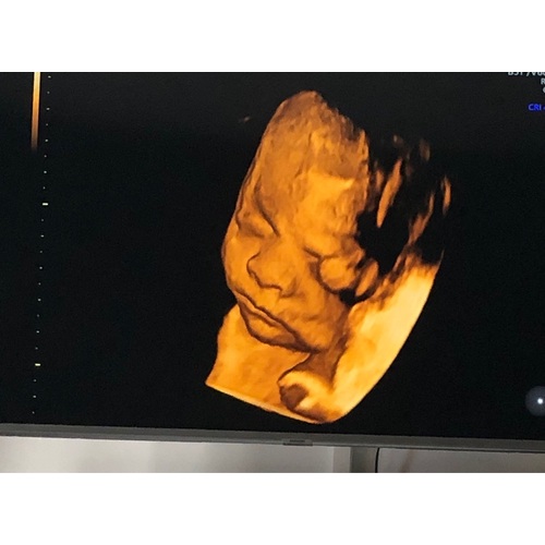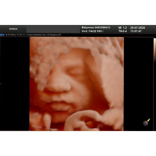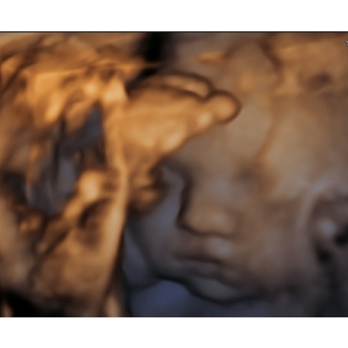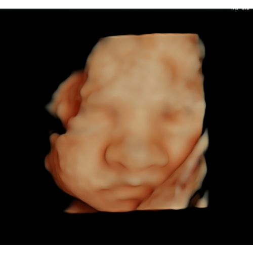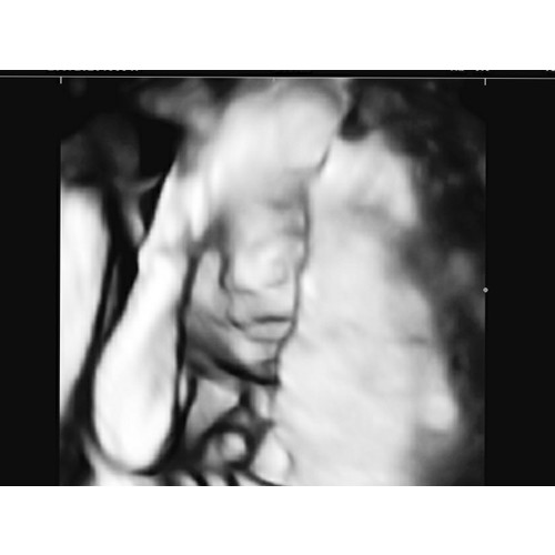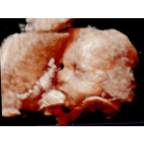Wij hadden 'm ook met 28 weken. Ons meisje lag al vrij laag met het hoofdje en zat met de linkerkant van haar gezichtje in de placenta gedrukt. En ze hield haar arm steeds voor haar mond. Af en toe piepte ze er boven uit en liet ze zich even zien. Het waren kleine momentjes, waarop we haar zagen gapen, lachen en drinken. Hoewel ik heel veel mooiere foto's gezien heb op dit forum, was het voor ons ondanks de slechte ligging een onvergetelijk mooie ervaring en zou ik het iedereen aanraden!