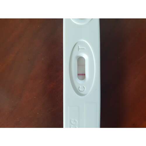 De foto is heel onduidelijk, je ziet de streep haast niet. Maar, binnen de tijd, was er wel echt een brede roze streep zichtbaar. Alleen dus wel behoorlijk licht
