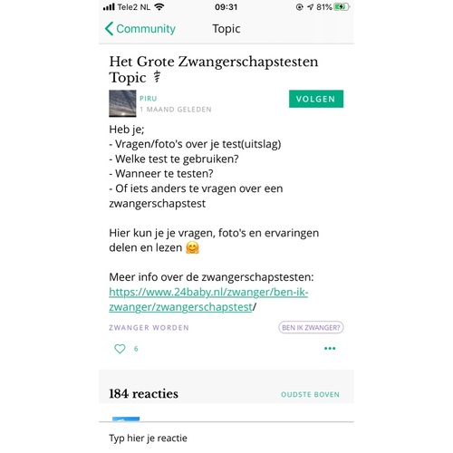 Omdat er zoveel topics geopend worden over zwangerschapstesten en vragen daarover, hebben we hier een algemeen topic aangemaakt. Je kan dit topic vinden via de zoekbalk onder ‘Grote zwangerschapstesten topic’ of via deze url: https://community.24baby.nl/forum/zwanger-worden/het-grote-zwangerschapstesten-topic-L3pdKN