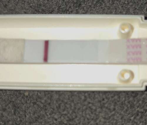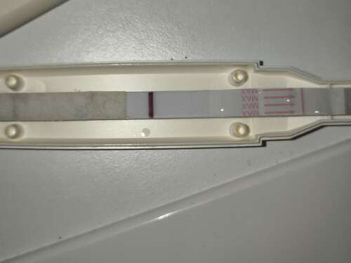 Op basis van de eisprong testen, ik zie in het echt wel een duidelijk roze lijntje maar is lastig om op de foto te krijgen, de foto was van binnen 1 min maar inmiddels word ie ook wel wat donkerder