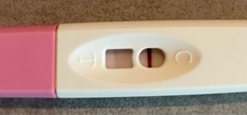 De afstand tussen de strepen horen altijd hetzelfde te zijn. Dat het stripje scheef in de test zit kan, maar deze strepen hebben niet de juiste afstand en het “streepje” is niet mooi strak. Dus zeker niet positief