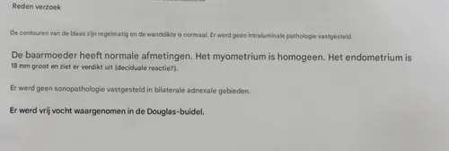 Ze zei als ik het was dan wachten ik af in Nederland zodat we daar kijken want het vocht kan ook komen door de rijping en de eisprong ofzoiets maakte ze ervan
