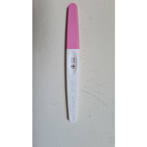 Ik denk ook iets te zien. Maar ik zal even het hele verhaal uit doeken doen. Ik had gister getest met die early kruidvat (mijn lieve ontwetende man wist niet van het onbetrouwbare karakter van die rotzakken) en dat gaf deze uitslag