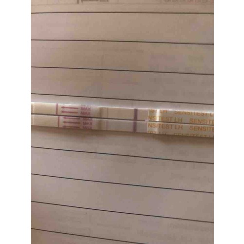 Ik had zo’n rits goedkope testjes besteld van sensitest op bol. Van die strookjes, zodat je ze goed met elkaar kunt vergelijken. Elke middag een gedaan vanaf dag dat het slijm begon en toen de eerste wat donkerder was 2x op een dag.