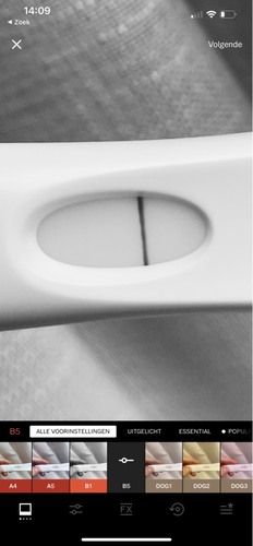 Ja ik zie wel wat maar zo licht en alleen in een bepaalde hoek dat ik dit nog geen positieve test zou noemen. Ik zou morgen/overmorgen en die dag er op ook in de ochtend testen 😊