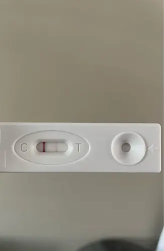 Ik zie een streepje, binnen afleestijd, maar hij is wel wat lichtjes, zeker niet zo dik als de teststreep..