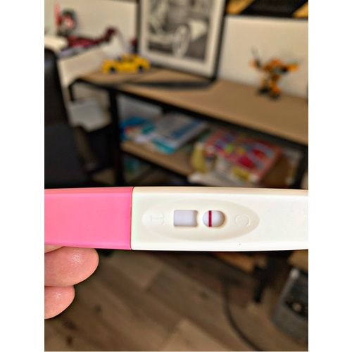 Nou lang verhaal kort, vanmorgen (i know, eigenlijk te vroeg) een zwangerschapstest van de action gedaan. Binnen de 5 min negatief, maar echt 30 seconde later een streep. Officieel buiten de afleestijd dus. Omdat ik nog nooit van de action een indrooglijn gehad heb nog een keer een zelfde test gedaan. Weer na 5.30 positief.