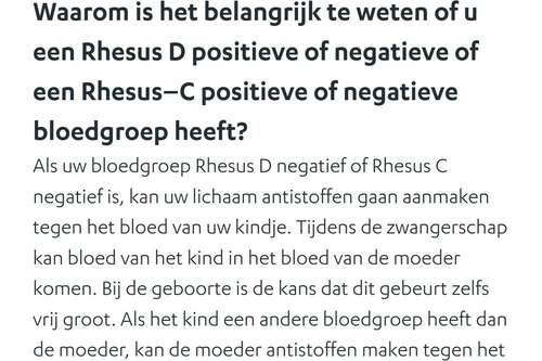 Oh sorry, ik haal dingen door elkaar! Geen bloedgroep maar rhesus.