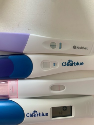 Dit waren mijn testen toen ik zwanger was, de blauwe waren het moeilijkst te lezen! (Ja veel testen want ik geloofde het niet eindelijk zwanger na 6 maanden negatief te testen 😂)