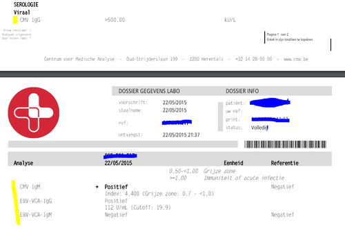 Ik ben zojuist gebeld geweest dat ik positief getest heb op CMV… In afwachting van verdere testen heb ik in paniek al mijn bloed analyses nagekeken en ik zou in 2015 reeds positief getest hebben hierop. Ik kan hier echter totaal niets uit opmaken en mijn dokter wimpelt het allemaal af als « iets waar ik toch niets aan kan doen » terwijl ik de afgelopen 24 in pure paniek doorbreng.. betekenen deze waarden uit 2015 dat ik een heractivatie heb? Dan zou ik me namelijk veel minder zorgen maken…