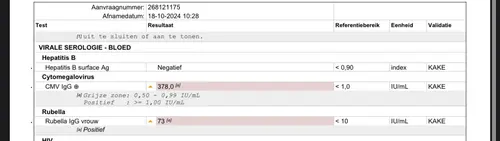 Alles gaat reeds goed in de zwangerschap nu met de bloedafname voor de nipt namen ze ook trg de waardes van cmv en deze zijn nu zo? Is dit oke?
