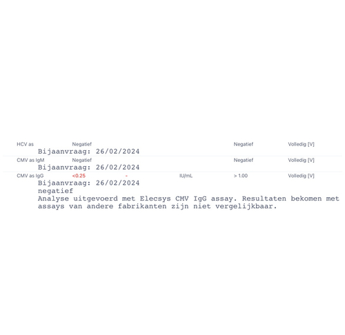Je bent heel zeker dat je in 2015 cmv IgG of IgM antistoffen had?