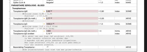 Om te weten of dit gaat om een recente besmetting moet je u IgM laten bepalen. Of aviditeit