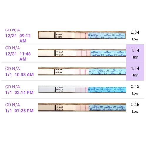 Wat betreft deze foto lijkt het voor mij alsof je piek vanmorgen was, maar ik weet het niet zeker want ben met deze testen niet zo ervaren.
