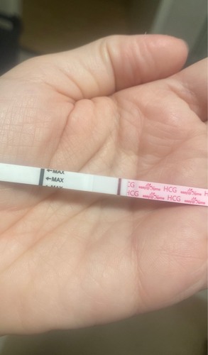 Ik zie het hier op deze foto’s echt niet. Als ik de scherpe originele pak zie ik het ietsjes, maar dan nog twijfel ik🙈 Ben al een halve dag urine aan het sparen zodat ik misschien een ander merk kan proberen nog vandaag, anders morgen misschien weer opnieuw kijken..