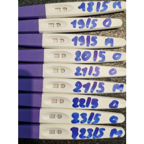 Ik gebruikte zelf de testen van easy@home & de app Premom. Handig daaraan is dat je de testen als t ware kunt inscannen & de app ze daarna soort van “analyseert”. Soms is ie positief (denk je) maar blijkt dat ie dan alleen nog maar “high” is en test je even door (dat kan in een paar uur veranderen) tot “peak”. En dan is die daadwerkelijk een pak donkerder. Maar dat kan maar heel kort zijn die daadwerkelijke donkerste..