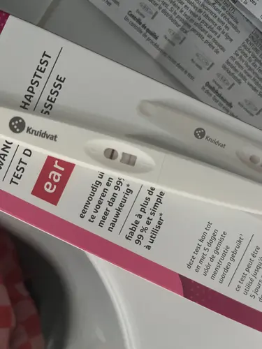 Hoi! Ik heb deze test gedaan, in de eerste minuut dacht ik een klein streepje te zien in weinig licht. Toen raam opengedaan (dus veel daglicht) en zag ik niets meer, maar rond de 5 minuten werd het streepje steeds donkerder. Met uiteindelijk dit resultaat: