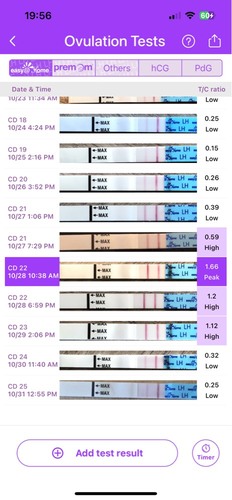 Misschien een domme vraag en ik ben hier niet heel bekend mee. Maar waarom niet de ovulatie testen van ClearBlue gebruiken, deze lijken mij makkelijker qua aflezen.. apparaat geeft goed aan wanneer je ovulatie er bijna aankomt (binnen 4 dagen) en wanneer je piek is. Bij mij heeft dat wel goed geholpen 🤗