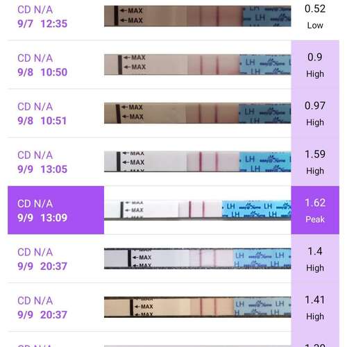 Ik had op 26/9 nod (43hcg) -29/9 (hcg8) mijn bloeding gehad op 1/9 en dit zijn nu mijn LH test . Ik denk dat mijn lichaam in de war is . Want nu al een hoger kans qua ei is toch zeer vroeg .