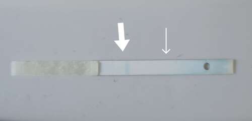 Als er geen controlestreep is, lijkt het me een foutieve test. Dus zou ik d ...