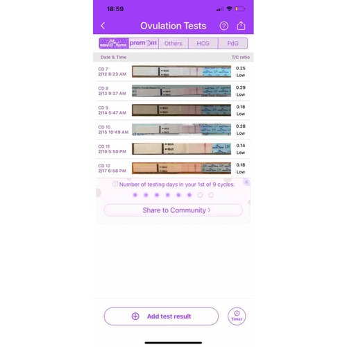 Dankjewel!! Ik heb ook PCOS, maar mijne zijn niet zo donker als die van jou!! Ik kan ivm werk niet altijd rond het zelfde tijdstip testen, maar ik ga vanaf nu sowieso 2x per dag testen. (Zit op cyclusdag 14 en zit aan de Letrozol dus de ovulatie zou deze dagen moeten komen 🤞🏼) thanks voor je tips!! 🥰