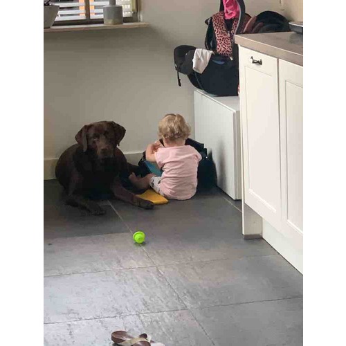 Zelf ben ik echt een hondenmens en we hadden een volwassen hond toen de oudste geboren werd. Ik vond het geweldig, ze waren zo lief samen, jarenlang de beste vrienden geweest.