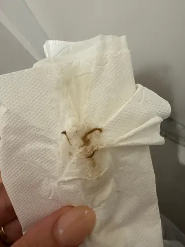 Ik heb sinds gisteren middag een beetje bruine afscheiding bij het afvegen. (Zie foto) Normaal als ik ongesteld wordt heb ik dat ook en is het wel veel meer en wordt ik altijd de volgende dag ongesteld. Het wordt ook niet meer