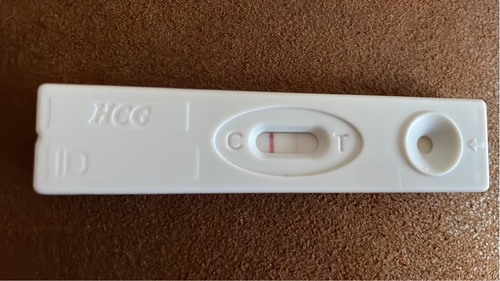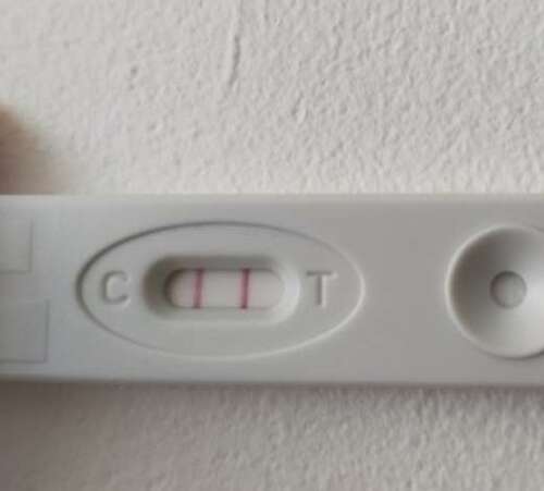 Zojuist weer een test gedaan, met dit als resultaat. Nu ben ik al helemaal door de war🤣. Ik ben 2 dagen te laat met mijn menstruatie. Ik heb menstruatiepijn maar het zet niet door. Ik ben sinds ik ben bevallen 10 maanden geleden nooit helemaal regelmatig meer ongesteld geworden dus het zou er nog aan kunnen komen. Maar vind dat hele lichte streepje van gisteren raar ten opzichte van deze