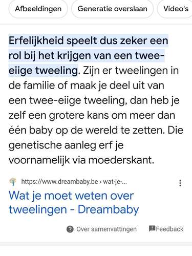 Hier zit het ook in de familie, en dan slaat het altijd 1 generatie over en is het vrijwel altijd bij de tweede zwangerschap. Mijn moeder is een tweeling, dus zou ik weer aan de beurt zijn 🤣 bij de tweede er ook rekening mee gehouden dat het er 2 konden zijn. Toen ik bij 9dpo al (best behoorlijk) positief testte begon ik toch wel wat te stressen. Ik moet jr zeggen dat ik wel heel opgelucht was dat ik degene ben die de 'traditie' verbreekt 😅🤣