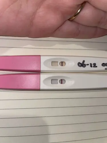 Opnieuw een tuurstreepje. Lijkt iets breder te zijn de streep, maar echt nog heel vaag. Heb beetje mijn hoop verloren 馃槥 woensdag of donderdag hoor ik ongesteld te worden