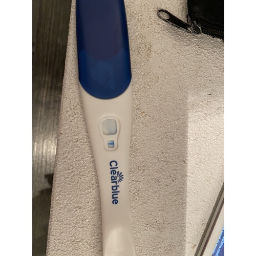 Ik zie alleen een horizontale streep en dus negatief. Volgens mij is deze test sowieso ongeldig, aangezien de streep helemaal uitlekt. Even een nieuwe test doen voor de zekerheid!