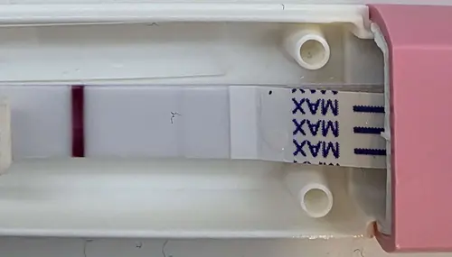 Overmorgen weer testen. Een positieve zwangerschapstest is duidelijk met het blote oog zichtbaar. Daarvoor hoef je de test niet te slopen.
