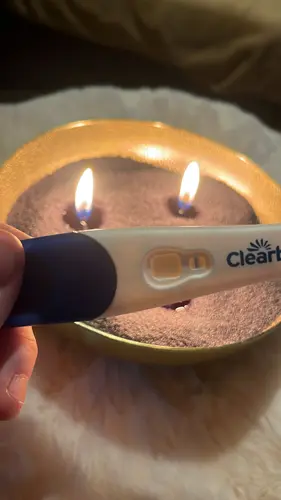 Door die kaars erachter is het niet echt te zien. Eventueel kan je een foto maken en deze zwart wit maken dan zie je het soms beter.