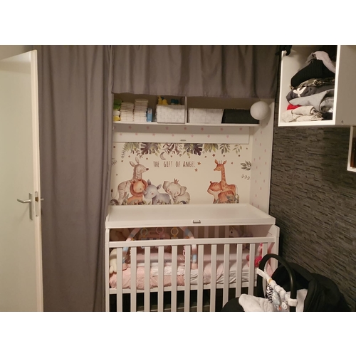 Slim inderdaad af schermen hoor. Dat is voor ons ook een optie over een tijdje. Je weet natuurlijk nooit hoe jezelf, je partner en je baby op elkaar reageren. Misschien ligt ons meisje wel wakker of wordt ze wakker zodra ze ons de hele tijd kan zien vanuit der bedje. Ook ben ik benieuwd hoe het gaat met het zelf doorslapen dan, of wij niet van haar wakker worden de hele tijd. Voor ons echt geen probleem dat ze bij ons op de kamer moet. Maar zijn natuurlijk wel heel nieuwsgierig naar hoe het gaat lopen allemaal. Achja de tijd zal het leren en ook dan zal er wel een oplossing gevonden worden!🤗 Dit wordt trouwens ongeveer onze baby muur. Kan niet wachten om eraan te beginnen.