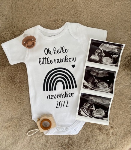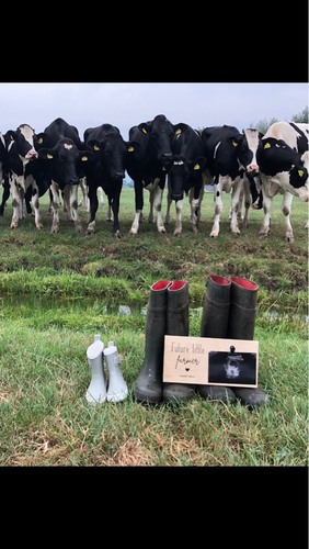 Ik heb de tweede keer (eerste keer werd een miskraam, toen wisten alleen opa’s en oma’s het) deze foto doorgestuurd naar iedereen. Dochter is nu 7 maanden, ze kan het rompertje bijna aan haha