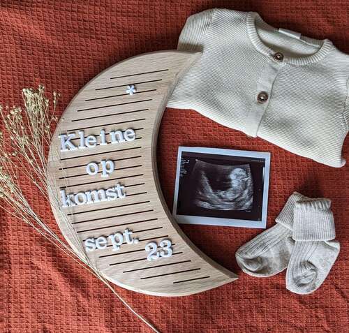 Eerste test: (mijn vriend) wist ervan was een tuurstreepje. Samen besloten om een paar dagen laten nogmaals te testen. 2e test een paar dagen later gedaan. Rond een uur of 5:00u vroeg in de ochtend want ja ik moest plassen en wilde perse geconcentreerde urine haha. Streepje kwam al wat duidelijker in zicht. Terug in bed nog een paar uurtjes geslapen en opnieuw een 3e test gedaan. Deze was overduidelijk! Ik heb de test in een doosje gedaan met een knuffel, confettisnippers en een kaartje met: ‘wij worden papa en mama!’ Eenmaal beneden mijn vriend ermee verrast.