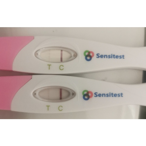 Ik heb nooit een vals positieve gehad met sensitest. En mijn eerste streepje was veel lichter!