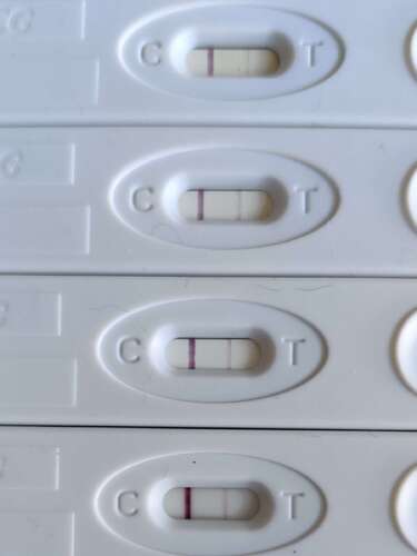 Het streepje loopt wel op, maar erg licht...voor om de 2 dagen zou je wel meer verwachten. Tussen de bovenste en onderste zit dus 6 dagen, dan is de oploop wel heel minimaal helaas.