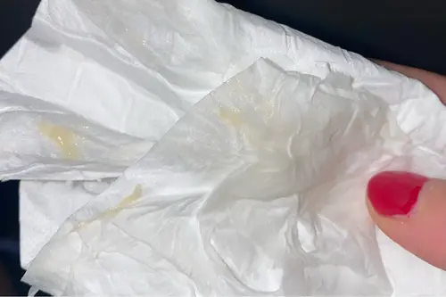 Vandaag 10 DPO. Vanmorgen deze afscheiding. Rest van de dag niet meer. Iemand enig idee wat dit kan zijn? Enige symptomen zijn erg moe, en licht pijnlijke borsten.