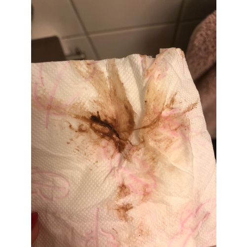 Vorige maand had ik precies het zelfde! Het duurde een week. 1 dag bruine afscheiding precies het zelfde als de foto en dan 2 dagen later in de ochtend wat lichtroze op mijn inlegkruisje of op mijn wc papier. Toen stopte het en kreeg ik heftige krampen heb ik 8 dagen heel heftig lopen bloeden. Weet nogsteeds niet of het mijn menstruatie was of mijn ongesteldheid. Nu ben ik al een paar dagen weer bezig en heb ik net na een klusje wat lichtroze/bruine slijmpropjes in de wcpot gezien. Misschien een bloedvaatje geraakt of ik denk weer innestelingsbloeding. 30 juli verwacht ik mijn menstruatie!