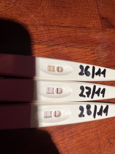 Ik zie ook een goede oploop. Wanneer had je voor eerst getest? Na dat je ongesteld moest zijn?