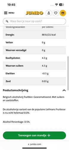 Op de site van de Jumbo staat onder de Liefsmans Alcohol Free: