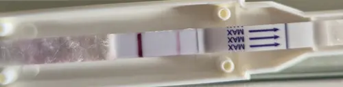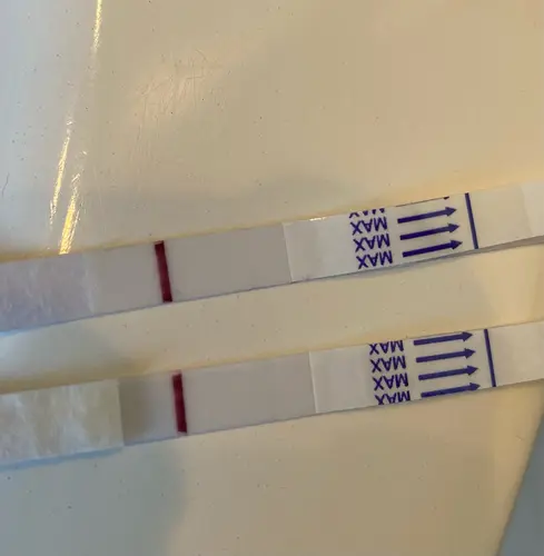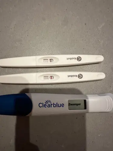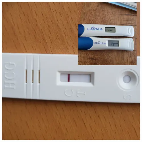 Op de twee testen op de foto zie ik echt niets. Mijn advies: over een paar dagen weer eens testen. Één test, één merk.